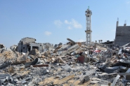 Photo above taken on the 18th August 2014 by Charlie Andreasson of the International Solidarity Movement of the destruction in Gaza City after Israel's 'Operation Protective Edge' attack. The damaged minaret is all that remains of a mosque.